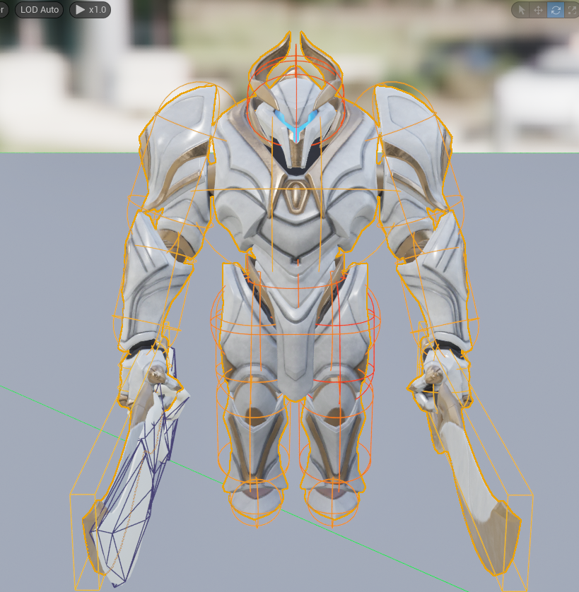 physics asset을 입힌 Skeletal 매쉬의 콜리전을 확인하면 다음과 같다.