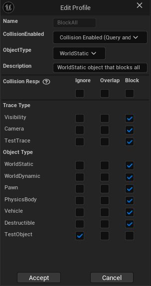 Object Type으로 해당 Collison의 채널을 설정할 수 있다.
